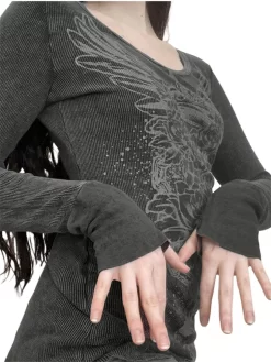 Women Spring Autumn Tops Long Sleeve V Neck Slim fit T-shirt y2K Clothes Gothic Graphic Print Shirts Streetwear